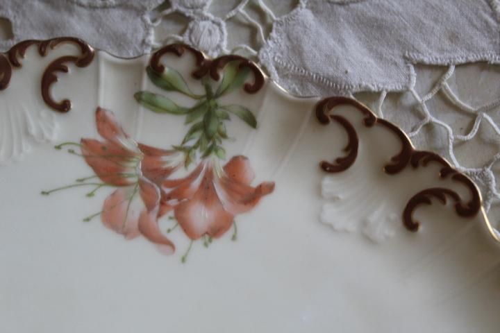 クリーム地にユリと縁には金彩がハンドペイントされたエレガントな1枚です。
