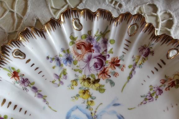 ドレスデン リボン フラワー ガーランド ハンドペイント プレート