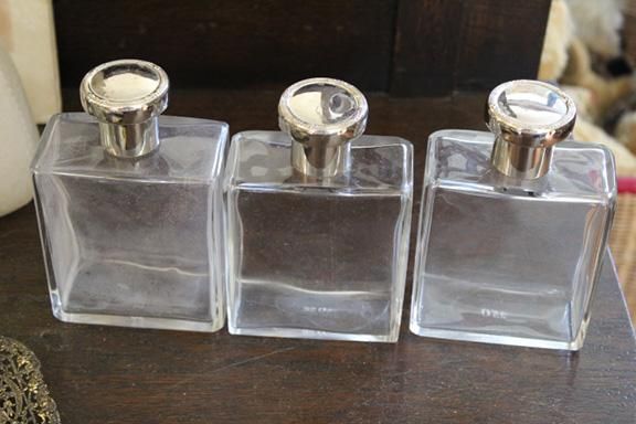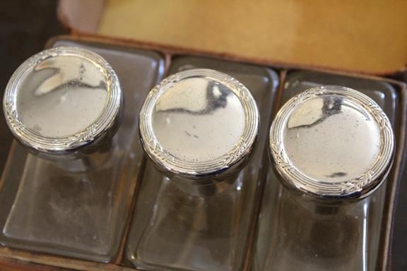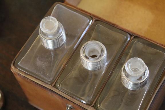 アンティーク パフュームボトルが3本がレザーケースに入ったものです。