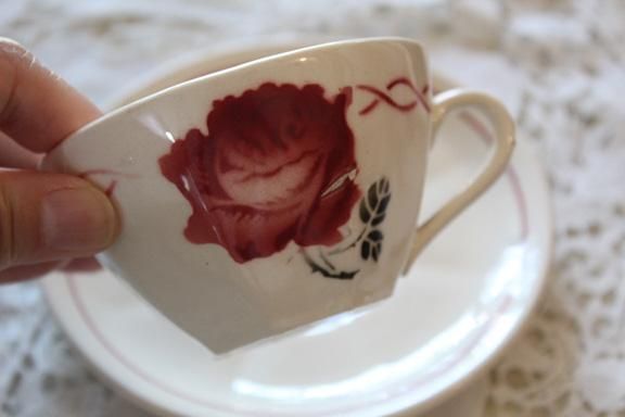 アンティーク フランス バドンヴィレ ローズ カップ&ソーサー a