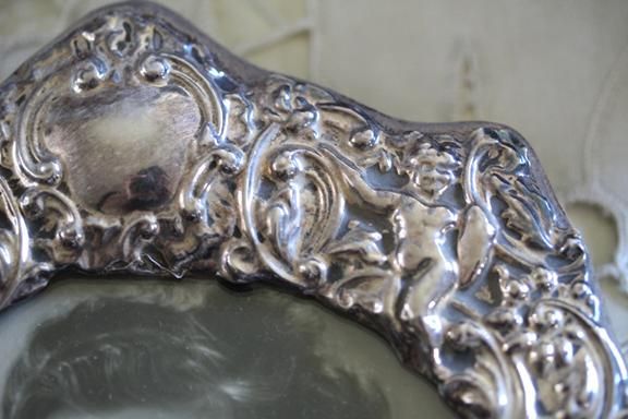 スターリングシルバーにエンジェル・装飾の型押しがされた