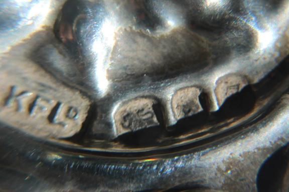 ヴィンテージ イギリス KFL社の シルバー フォトフレーム スターリングシルバー(刻印あり)にエンジェル・装飾の 型押しがされた凝ったデザインです。 *ガラス縁はギザギザしています。 サイズ : 155mmX170mm 配送方法: ゆうパック<60>