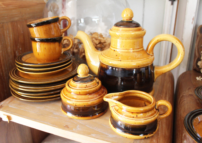 カップ&ソーサーとポットは今はないフォルムになっています。
