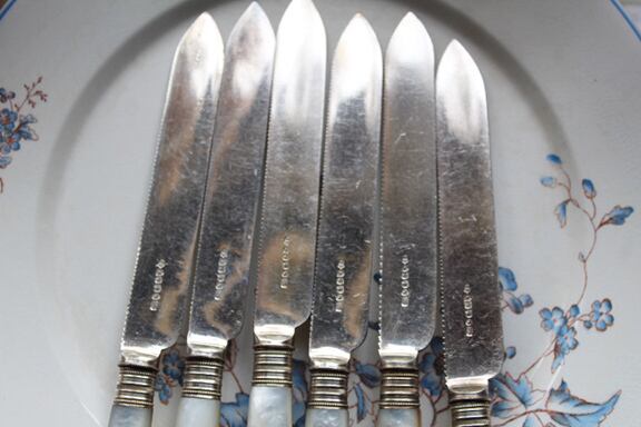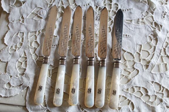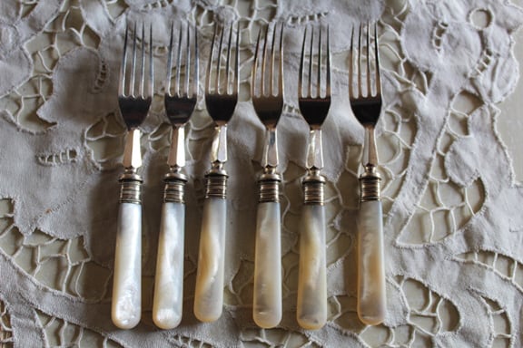 イギリス シェフィールドWalker & Hall マザーオブパール デザート ナイフ、フォーク ×6本