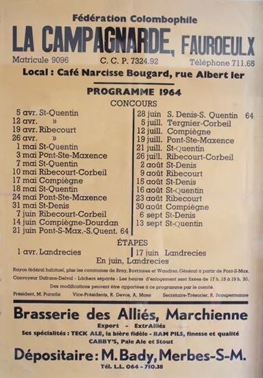 1964年ベルギーの愛鳩家イベントのヴィンテージポスターに