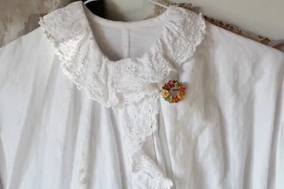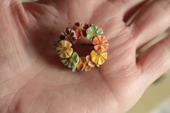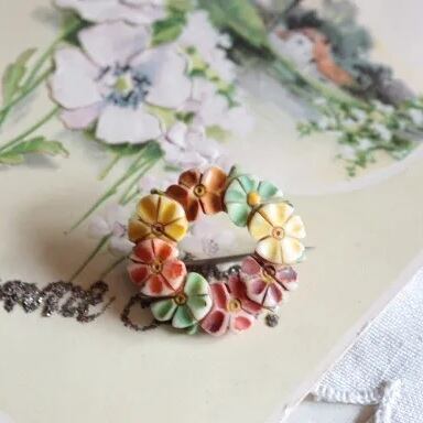 ヴィンテージ ボーン細工フラワーリースのブローチ