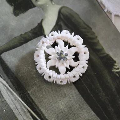 ヴィンテージ エーデルワイス透かしボーン細工ブローチ