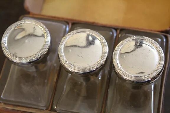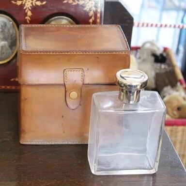 アンティーク パフュームボトルが3本がレザーケースに入ったものです。