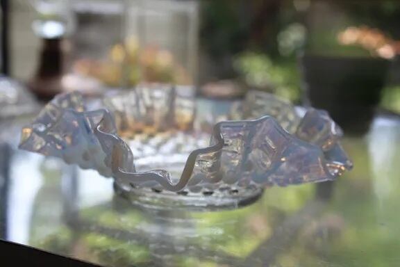 ヴィンテージ フェントン ホブネイル フレンチオパールセント フリルガラス ボウル