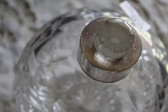 カットが入ったクリアガラスにシルバープレートの蓋にはレリーフが