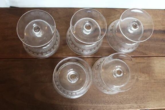 円とお花のようなエッチングが上部に入り、下部には格子のカットが入っています。