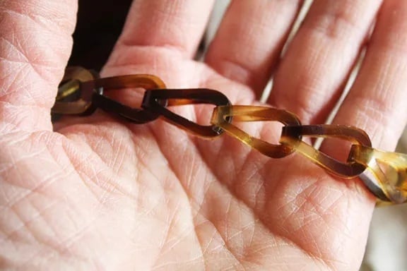 チェーン(セルロイド)のデザインが結にーくで生地と合っています。