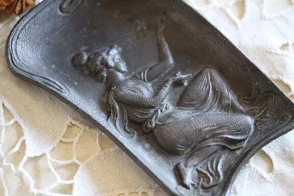 アンティーク アールヌーヴォ 婦人像 トレー
