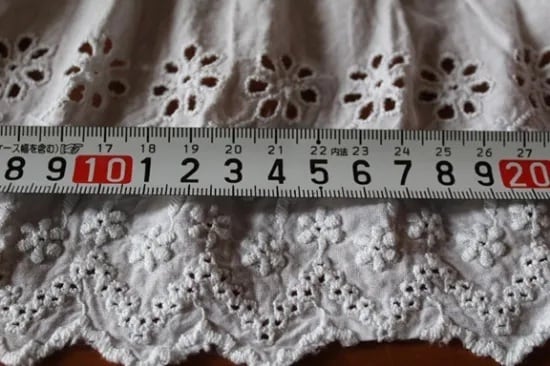 カットワーク刺繍 ホワイト刺繍 リボン通し スカートの裾(15×158)