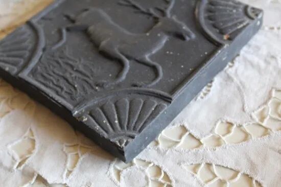 アンティーク 黒い走る鹿のタイルです。