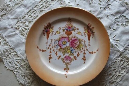 1920年代頃のお品でレトロ感のあるお花のハンドペイントです。