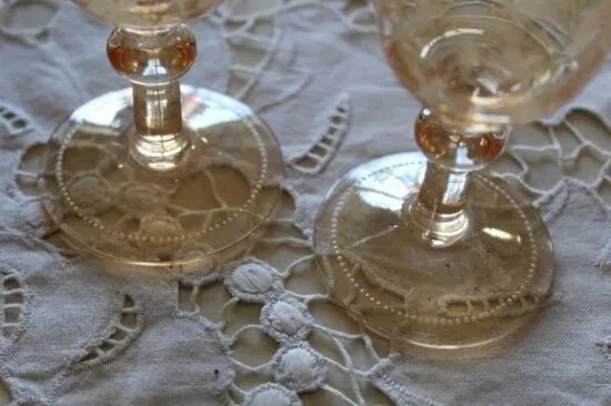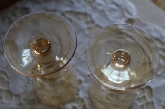 ヴィンテージ ラスター 葡萄蔦のエナメル ゴフレット グラス 2客