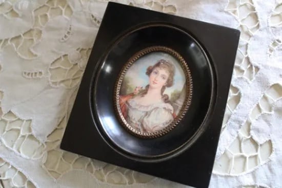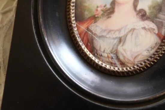 アンティーク 壁掛け木製フレーム 婦人の肖像画です。