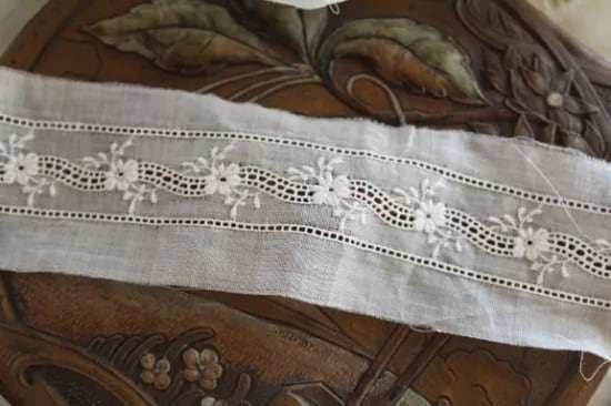 アンティークのオーガンジーホワイトカット刺繍レースリボン