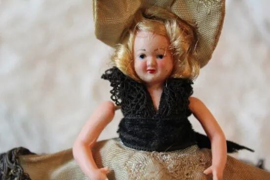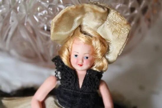 大きい帽子がかわいい女の子で、座っている状態で固定されています。