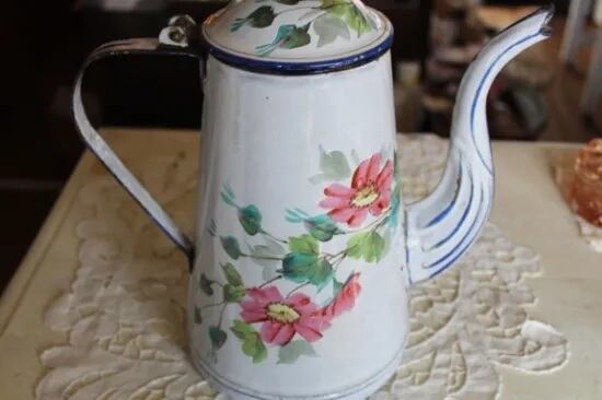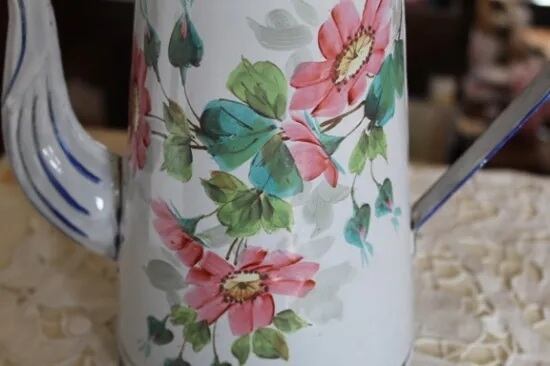 フランス ハンドペイント ピンクのフラワー ホーローポット