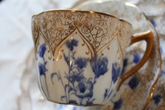 ブルーのお花に金彩が入ったきれいなデザインです。