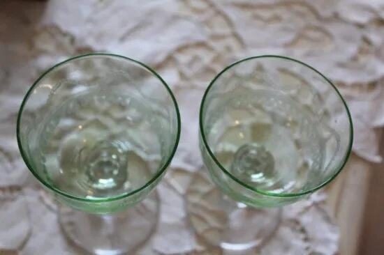 アンティーク ベルギーのウランガラス ワイングラス2客セットです。