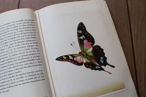 半分が画のページでさまざまな蝶が1ページ大きく描かれています。