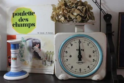 ビンテージ ドイツ"KRUPS"社のスケール ホワイト×ブルーのPOPなデザインです。